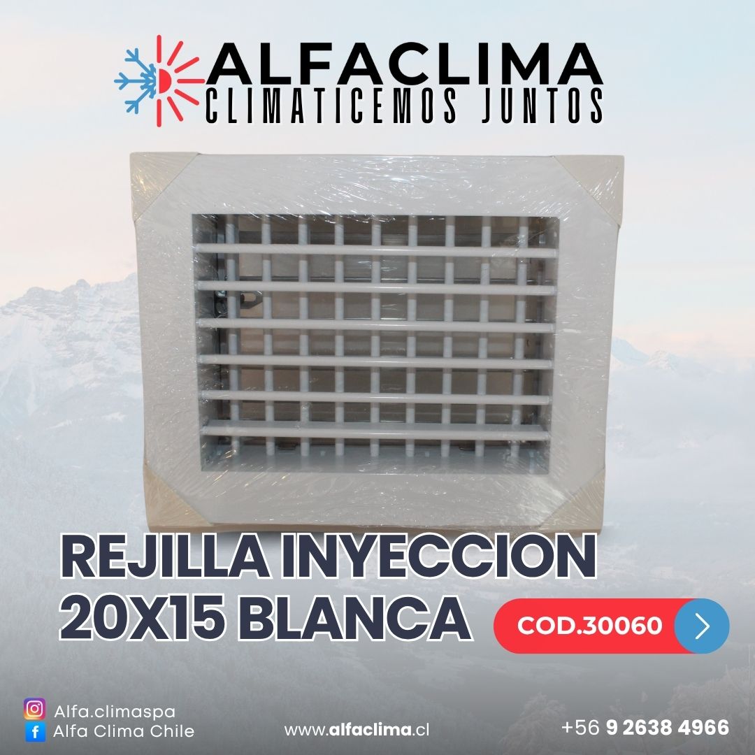 REJILLA INYECCION 20×15 BLANCA CALIDAD EN ALUMINIO,TERMINACION C/DAMPER REGULABLE